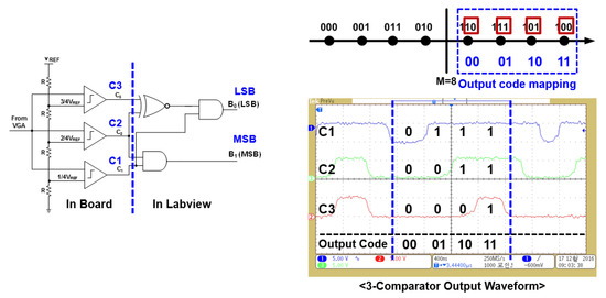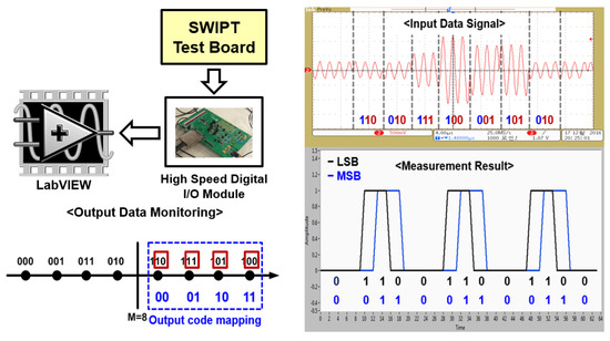 Figure 14 shows a 2-bit encoding process. These encoded 2-bit symbols were verified through a constellation used for modulating digital data. Each symbol consisted of three bits, with two bits representing the amplitude variation, and the other one indicating 180° phase change in a modulated signal. The 3-bit symbol was recovered by combining the output of a 2-bit ADC along with phase variation information through ILOs.