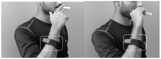 - Skinner, A.L.; Stone, C.J.; Doughty, H.; Munafò, M.R. StopWatch: The Preliminary Evaluation of a Smartwatch-Based System for Passive Detection of Cigarette Smoking. Nicotine Tob. Res. 2018, 21, 257–261. [Google Scholar] [CrossRef]
