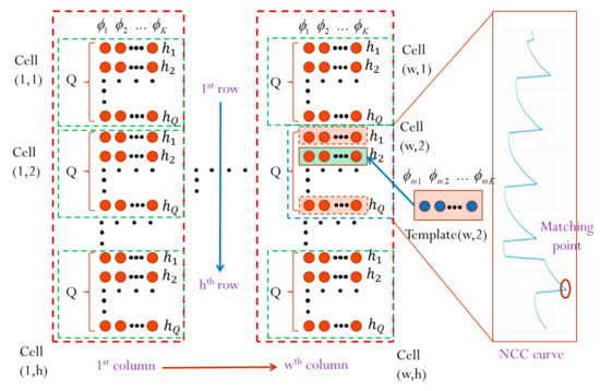 Assuming that the stored reference phase in the database and the distorted phase retain uncertainty ( and , respectively), with denoting a different frequency index, the NCC-based method is employed to calculate the matching score between the measured phase value and the reference phase value in the database using Equation (14):
