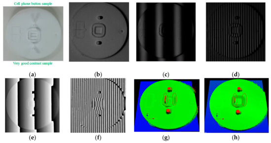 - Saldner, H.O.; Huntley, J.M. Temporal phase unwrapping: Application to surface profiling of discontinuous objects. Appl. Opt. 1997, 36, 2770–2775. [Google Scholar] [CrossRef]