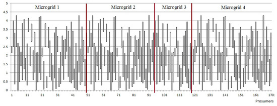 Figure 5 presents the pool of prosumers generated and distributed in the 4 micro-grids considered and shown in Figure 4.