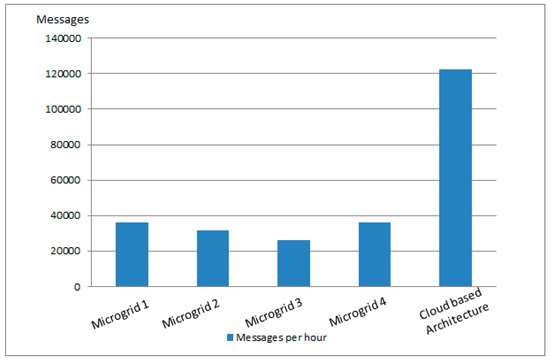 Number of messages sent during one hour by smart meters associated with prosumers.