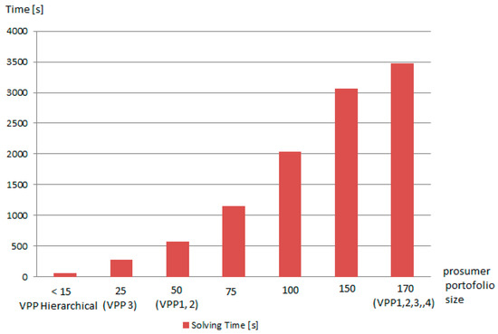 As shown in Figure 15, to determine the optimal coalition for a small number of prosumers such as when creating a hierarchical VPP in our scenario, the solving time is much smaller compared with the nonhierarchical approach. Moreover, the time needed to compute the solution is less than 10 minutes, making the model viable for addressing the aFRR service constraints (the time for solution generation in the nonhierarchical case is unfeasible for aFRR implementation).