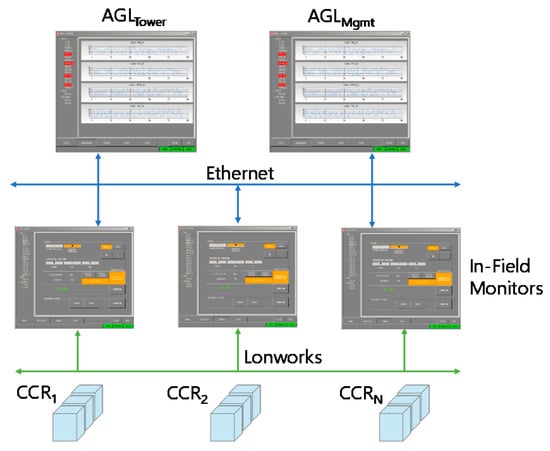 At the top layer reside workstations hosting ALCMS/AGL tower and maintenance applications, which support human operators residing in the airport control tower and in the electric facilities respectively. Primary software components are: