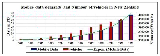 Mobile data demands and number of vehicles in New Zealand (NZ).