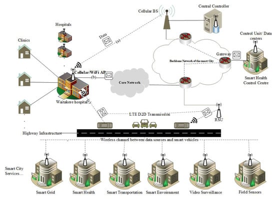 In the near future, SCs are envisioned to provide services such as road lights conversing with the smart grids, urban parks associating with administrations, seasides conveying cautions on pollution levels, and flood alerts to disaster management. This results in generation of huge data, and they are stored in the data clouds or some data control centers for processing and analysis. A huge number of sensors, installed in each city will continually generate a tremendous amount of data []. For instance, Westminster City Council has introduced solar waste bins that can speak to city council workers and inform them how much full they are. The framework used infrared and telemetry sensors and prompted a 60% decrease in cost for waste collection. Smart homes are now turning into reality, and it is expected that they will be available commercially by next year. Splunk predicts that one smart home today can create as much as 1 GB of data in a week. This means that all the UK smart homes may generate more than 26 million GBs of information []. Furthermore, video surveillance of entire city, smart sensors, and smart girds also generate big volume of data on each day for processing and analysis [].