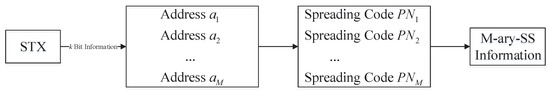 As shown in Figure 2, the STX needs to transmit k bits information, and convert the k bits information into M addresses (). Each address corresponds to a pseudo-noise (PN) code, and PN codes are orthogonal to each other.