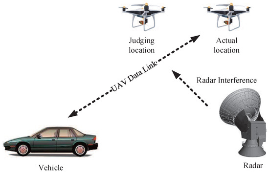 Radar pulse (RP) interference is mainly caused by terrestrial radar transmitting wireless electromagnetic waves. Due to RP interference, ground vehicles are unable to accurately obtain the location of the UAV. Figure 5 is the schematic diagram of RP interference.
