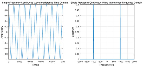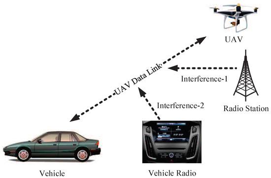In AGIVNs radio stations, vehicle radios often generate single frequency continuous wave (SFCW). Thus, when this signal frequency is equal to the center frequency of the UAV data link, it affects the reception of the signal. Figure 9 is the schematic illustration of SFCW interference.
