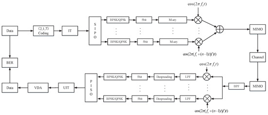 The authors of [16] proposed a communication system based on the DSSS to reduce the BER by increasing STX power. L. Xiao et al. [17] used chaotic map sequences to improve the security of the DSSS anti-interference ability of the system without increasing the spread spectrum sequence. In addition, the DSSS is applicable to the actual engineering field by using field-programmable gate array (FPGA) [18].