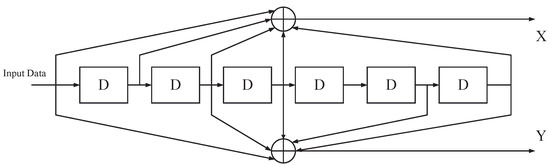 Specifically, the data rate input of STX is . Then, STX uses the (2, 1, 7) convolutional coding to encode the data. Figure 13 is the convolutional coding module block diagram.