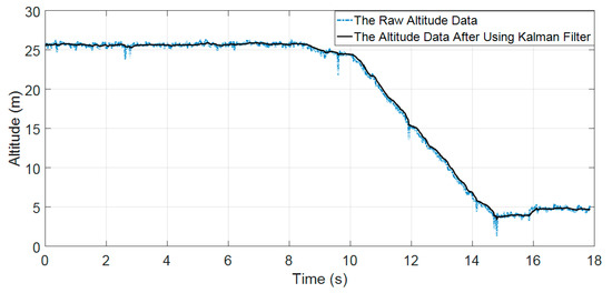 The comparison between the raw altitude signal and the altitude signal with the use of the simple Kalman filter.