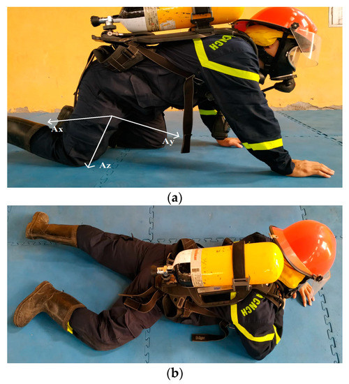 According to [1], 68,085 US cases of firefighter injuries were recorded in 2015 with 29,130 occurrences during fire ground operations and a total of 64 firefighters died on-duty in the same year [2]. The details of US firefighter injuries by type of duty during 2015 are illustrated in Figure 1. In Vietnam, thousands of fires on different scales occur every year; for example, 2357 and 2792 fires were reported in 2014 and 2015, respectively [3,4]. This is an alarming signal for firefighters in the US, Vietnam, and other countries over the world because they constantly work and are faced with perils yet possess inadequate suitable supporting systems to protect their lives. There are several supporting systems such as the fall detection system, PASS (Personal Alert Safety System). Nevertheless, most of the fall detection systems are only intended for the elderly and patients with slow movement, which are certainly inapplicable for firefighters’ activities in their working environment. The PASS system was developed by Homeland Security to signal for aid via an audible alarm if on-ground firefighter’s incapacitation is detected [5]. Furthermore, it can sense movement or loss of physical performance and activate a 95-decibel alarm if loss of physical performance exceeds a specific time period. However, in a real fire situation, there are a variety of noises like voices, cracking, sizzling of fire, the operation of fire protection systems, structure collapse, etc. Therefore, an audible alarm is not useful on a large scale. For instance, six and nine firefighters lost their lives in the fires in the Worcester cold storage and warehouse Co. at 266 Franklin street, Worcester, Massachusetts and The Charleston Sofa Super Store in Charleston, South Carolina respectively [6,7]. The proposed algorithms in this paper will be integrated with the indoor positioning system [8] to detect on-duty firefighters’ fall events and loss of physical performances to protect their health and lives.