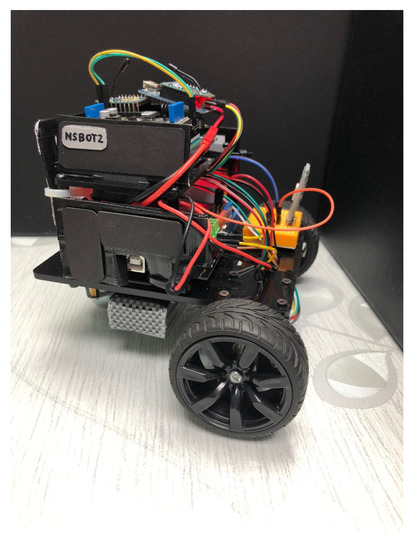 NSBot2: A nonholonomic wheeled mobile robot equipped with ATMega microcontrollers and Zigbee radio modules with IEEE 802.15.4 standard.