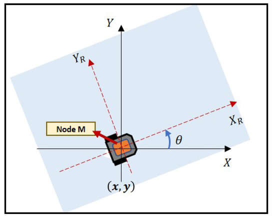 The movement of the robot can be decomposed into linear velocities with respect to the X and Y axes, i.e., and , which have a relation with linear and angular velocities as follows: