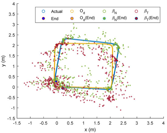 where represents the observed coordinate of the robot, while and indicate the actual position of the robot in the x and y directions respectively, which were obtained by using a camera. The localization error for the whole trajectory was then defined as