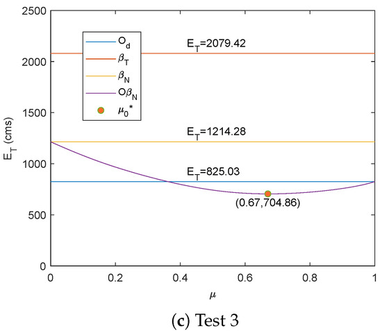 Figure 7 shows the resulting which is represented by when from Equation (24) is varied between its minimum and maximum values for the three tests. Due to the convexity of the search, the minimum value of can be attained for each case with weighting parameter which has a variance of less than 0.1. It is also worth to note that and correspond to the weighting parameters for and , respectively, hence acts as the error minimizer when both methods are combined.