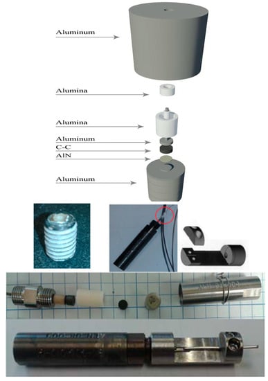 - Parks, D.A.; Kropf, M.M.; Tittmann, B.R. Aluminum Nitride as a High Temperature Transducer. In Proceedings of the 36th Annual Review of Progress in Quantitative Nondestructive Evaluation, Kingston, RI, USA, 26–31 July 2009. [Google Scholar]