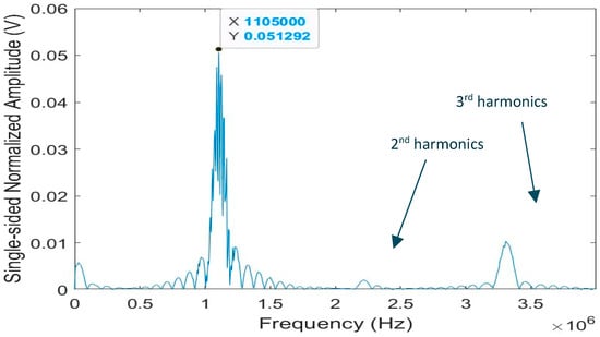 The Bi4Ti3O12/LiNbO3 transducer was also tested for low-frequency operation, but it was considerably less efficient. The signal effectively disappeared at frequencies much below 1 MHz. This again shows the great advantage of the use of the PZT/Bi4Ti3O12 composite. The PZT/Bi4Ti3O12 has a much greater signal amplitude and is more broadband allowing it to operate at low frequencies and produce viable waveforms. Thicker PZT/Bi4Ti3O12 transducers may further enhance their operation at low frequencies. Both the signal amplitude and signal-to-noise ratio can be increased along with better operation in the pulse-echo mode [,,,].