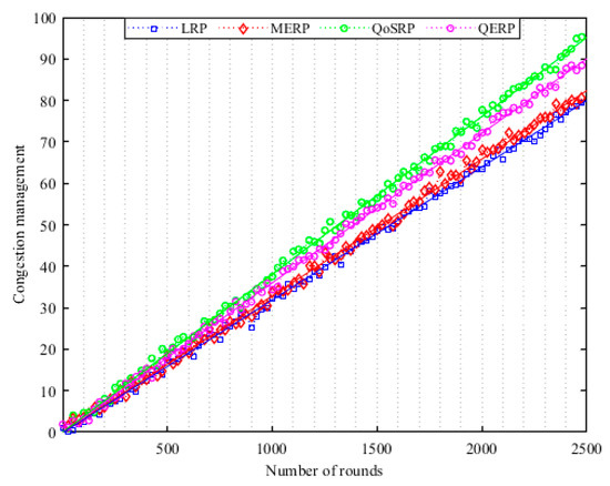 24]. In addition, shortest path routing increases the probability of congestion occurrences when the offered data traffic load rises above the node’s current buffer capacity in UWSNs. Therefore, the buffer occupancy frequently needs to be monitored in order to detect incipient congestion in the network. In addition, the number of hops the packets travel also must be reduced to minimize routing delay and improve the data delivery ratio in the network [