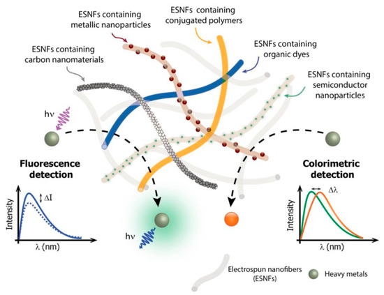 38]. Therefore, this approach can also be extended to fabricate the electrospun nanofibers through blending functional materials that are capable of detecting Hg