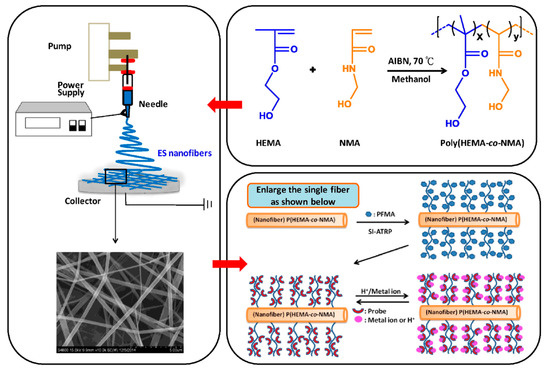 Chen et al. fabricated the electrospun nanofiber-based fluorescent chemosensory filter membranes using poly(2-hydroxyethyl methacrylate-