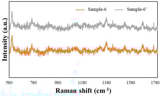 SERS spectra of Sample-6 and Sample-6′.