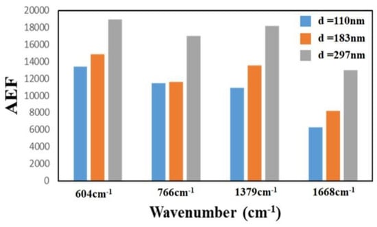 AEF for Sample-11 (d = 110 nm), Sample-12 (d = 183 nm) and Sample-13 (d = 297 nm) at 604 cm−1.