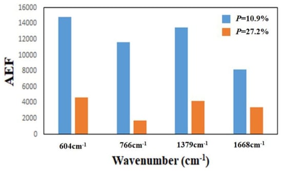 AEF for Sample-12 (P = 10.9%) and Sample-14 (P = 27.2%) at 604 cm−1.