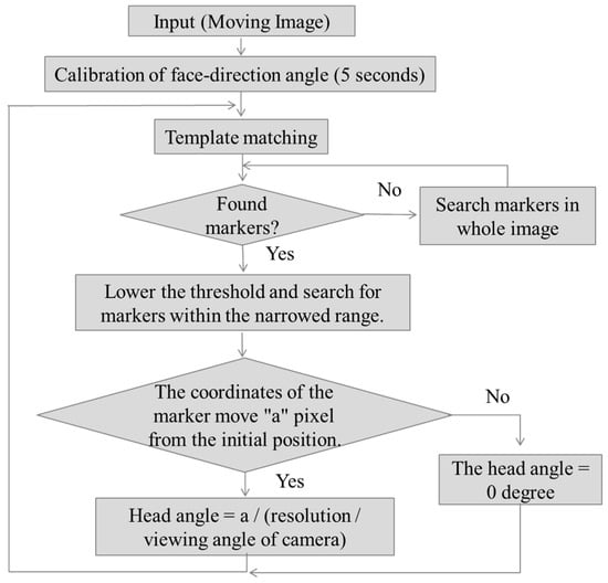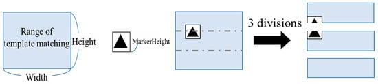 Considering the method of Section 4.2.1, we next introduced a method for reducing the processing time by: (1) dividing the search range into sections and (2) performing template matching beginning from the section where there was a high probability that markers are present.