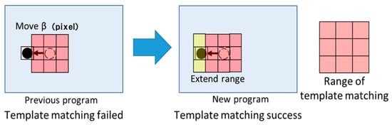 In our system, OpenCV was used for template matching. Since our proposed method searched template matching over the entire image range, it took time to process. Therefore, in this section, we propose an updated method to shorten the search time by narrowing the search range. We also verified whether highly accurate template matching can be performed with this method.