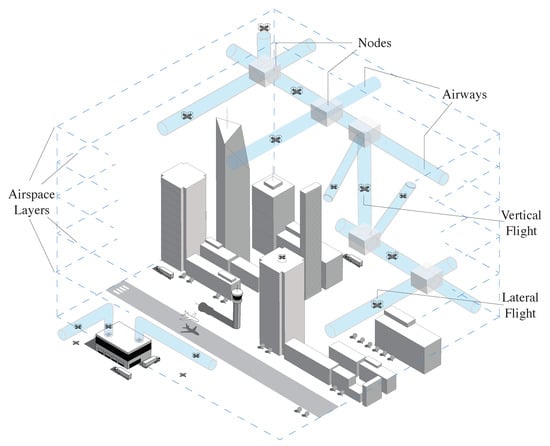 A mandatory first step towards a distributed UTM is to design and model the low-altitude airspace as its structure will have a significant role in air traffic management. This is emphasised in Referebces [20,21] where authors investigate the impact of the airspace structure and capacity for traffic densities.