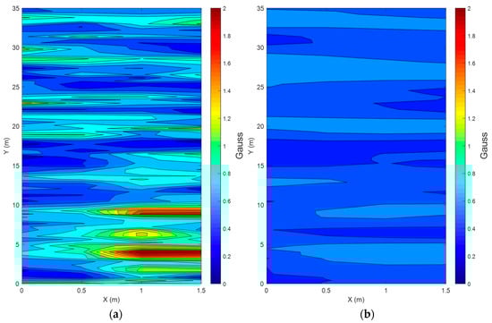Magnetic anomaly maps in the corridor ((a) is magnetic anomaly around the foot, and (b) is magnetic anomaly around the waist).