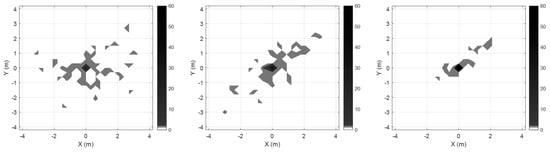 The proposed algorithm was applied, and experiments were conducted to confirm the outlier mitigation. The comparative results are shown in Figure 9, where outliers are displayed. As shown in Figure 9a,b, the position errors in cases involving the single sensor are largely due to the ambiguity and redundancy. As shown in Figure 9c, when using multiple sensors, although the error is greatly reduced and the overall path can be identified, the outliers still exist. When applying outlier mitigation with normalization, roughness weighting, and importance sampling, outliers can be reduced more significantly.