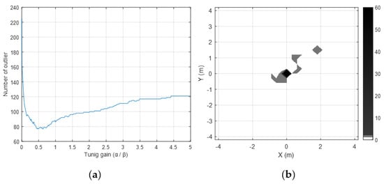 (a) Represents the number of outliers according to the tuning gain. (b) Shows the outlier when the roughness weighting factors are applied.