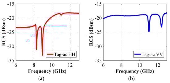 Co-polar RCS simulation results of tag-ac: (a) Co-polar HH RCS responses; (b) Co-polar VV RCS responses.