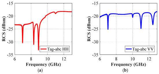 Co-polar RCS simulation results of tag-abc (a): Co-polar HH RCS responses; (b) Co-polar VV RCS responses.