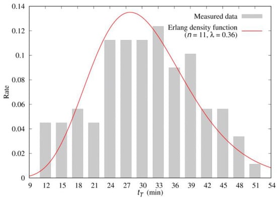 After estimating the parameters of the Erlang distribution, the Kolomogorov–Smirnov (K-S) test [] is used to validate whether the distribution is actually an Erlang distribution.