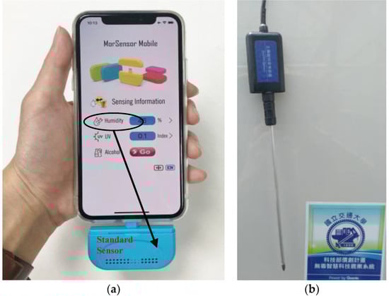 Smartphone-based portable STD value generator; (a) STD sensors in the air; (b) and (c) STD sensors in the soil.