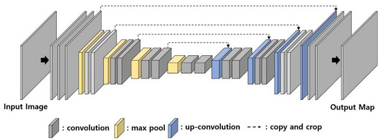 U-net is one of the representative convolution and deconvolution architectures originally proposed for the segmentation task of a biomedical image [20]. U-net has a symmetrical u-shaped structure of convolution layers and deconvolution layers as shown in Figure 2. There are variant forms of the U-net, which are applied to edge detection, segmentation, and saliency detection. Holistic Edge Detection (HED) [9] uses various multi-scale U-net architectures to detect fine edges. The U-net is applied to the segmentation and saliency map detection to identify a perceptually important region in an image [10].