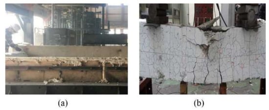 (a) Fire experiments to construct the database and (b) the concrete structures after the fire.