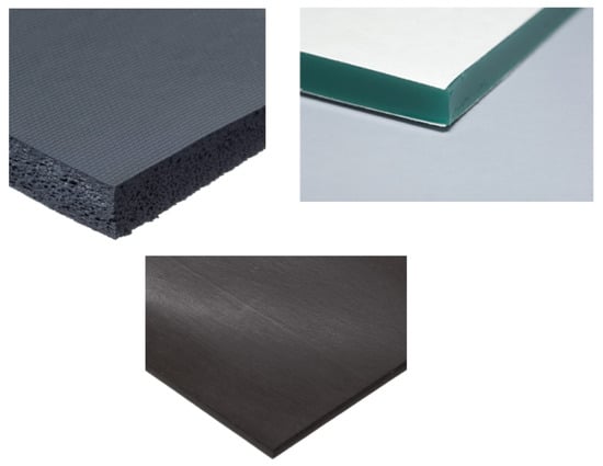 Dampers can be used for vibration isolation, to lower the natural frequency of the system to below the excitation frequency, and for vibration damping, where the aim is to absorb the mechanical energy and convert it to other energy forms, such as heat. Three types of dampers (Silicone Foam; Kyosho Zeal; and Sorbothane 30 Durometer Sheets) (Figure 6) were tested by Zhenming Li et al. [11] to mitigate the vibration on a rotary-wing sUAS. In total, six aspects were taken into consideration when choosing the dampers: (1) electrical insulator to avoid short-circuit; (2) soft and flexible; (3) natural frequency outside sUAS structural resonance zone; (4) low compression set and low creep; (5) good resistance to outdoor conditions; and (6) easy installation and adjustment.