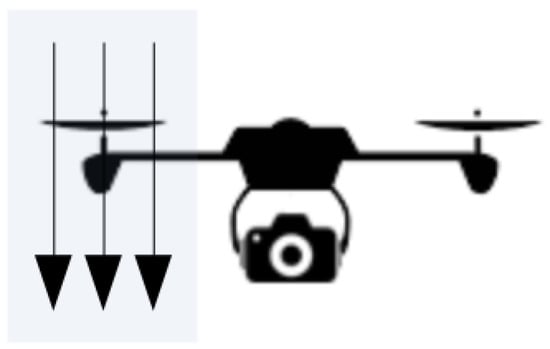 For rotary aircraft operating in stationary flight, there is no forward motion of the vehicle. As the air in front of the rotor is accelerated by the rotors itself, the above-mentioned aerodynamic effects require additional design considerations. By locating the camera system outside of the propeller slipstream (vs), the impact of the aerodynamic effects are limited (Figure 14). When the aerodynamic effects as a result become small, such a system may not require further aerodynamic optimization. Note, however, that when operating in atmospheric winds the aerodynamic effects remain. For rotary-wing aircraft, a center position should be considered. For conventional rotary aircrafts, which typically utilize one main rotor, the camera mounting points are commonly found under the main body. As the aircraft’s main body shields the camera system to a large extent from the propeller slipstream, the need for aerodynamic optimization decreases. However, due to other design considerations, such as clearance to the ground, these mounting locations may not be feasible. For conventional rotary-wing aircraft, the camera systems are often found to be mechanically suspended in front or along the side of the aircraft body. In such cases, the aircraft performance benefits from a minimized wetted area, which is the area exposed to the airflow, in order to reduce the interference drag and propeller blockage.