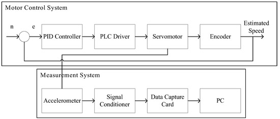 The major structure of this system includes a motor control system and measurement system. The motor control system manages to bridle a motor through a PC and BeckHoff controller and uses a PID controller algorithm. A set of human-machine interface (HMI) is built into the PC to monitor motor status in real time. As for the measurement system, it can capture the signals from the accelerometer through NI myRIO embedded system, as well as signal conditioner. Both the motor control system and measurement system are applied to the motor measurement platform developed in the lab, which is shown in Figure 1; the related hardware specifications listed in Table 1.