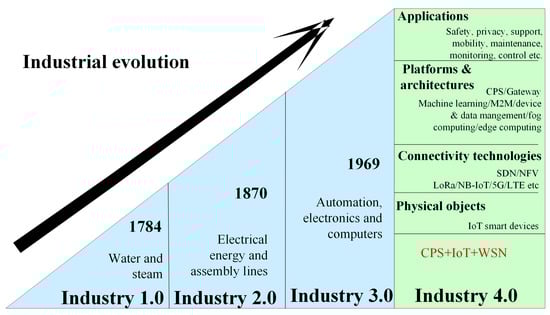As discussed earlier, IIoT or Industry 4.0 is a new emerging term for future industry, which involves many key enabling technologies and applications of IoT. In this section, Industry 4.0 evolutional phases, IoT connectivity technologies, benefits from IIoT and key enabling technologies that endorse industrial revolution are briefly explained.
