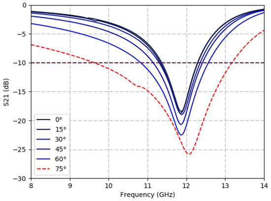 Figure A14 to indicate the region of frequency space in which spirals should have common bandwidth (below −10 dB) with a target spiral. Similar to a common impedance bandwidth, this is the region in which spirals will constructively help filter incoming radiation. Spirals with center frequencies outside of this region may increase the bandwidth, but will not improve the filtering (decrease