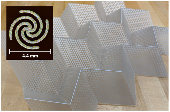 Figure A7 shows an example of a study of a subset of spirals in which arm lengths are independently measured and compared among spirals in the lattice. Each arm is measured to preserve information on start and stop defects rather than measuring the average length among the four arms in a single spiral. The colorbar scale refers to the increase or decrease in the millimeter length of the single arm compared to the target length. Each dot is a single spiral in a hexagonal lattice and the variances are denoted by the color of the dot. This visual representation provides feedback on specific areas where print defects occur during a print job. The analysis of geometry spatially in the lattice allows for print process parameters to be tuned prior to printing full samples. This arm length study was conducted as a means of determining where errors occurred in an attempt to mitigate them in later print processes.