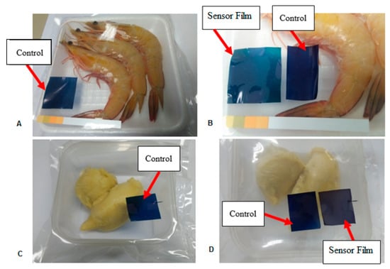 Two types of food sample were use as real samples to demonstrated the effectiveness colorimetric pH sensor film. In this study, fresh shrimp and durian samples were tested using the colorimetric pH sensor film in food spoilage evaluation stored at ambient temperature (28 ± 1 °C; 70–85% RH).