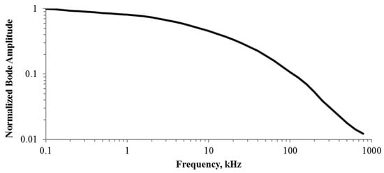 Two physical mechanisms link the CUT and the sensor’s temperature transducers: thermal coupling and the Joule Effect. Thermal coupling is the physical phenomena that relates the temperature increase at one point of the silicon surface (i.e., the location of a temperature transducer) with the power dissipated by the CUT. A key property is that, for low-power dissipation magnitudes, it behaves as a linear low pass filter, attenuating the high-frequency components. Figure 1 shows the thermal coupling frequency response measured in [27]. It was obtained using a differential temperature sensor whose temperature transducers were placed 240 µm apart, with the CUT being a MOS—Metal Oxide Semiconductor—transistor placed at 25 µm from temperature transducer 1. There, the attenuation at 100 kHz is approximately one order of magnitude higher than that experienced at 100 Hz, whereas at 1 MHz, the attenuation is approximately two orders of magnitude higher. As the distance between the CUT and the temperature transducer increases, the attenuation becomes stronger, which reduces the filter cut-off frequency [28].