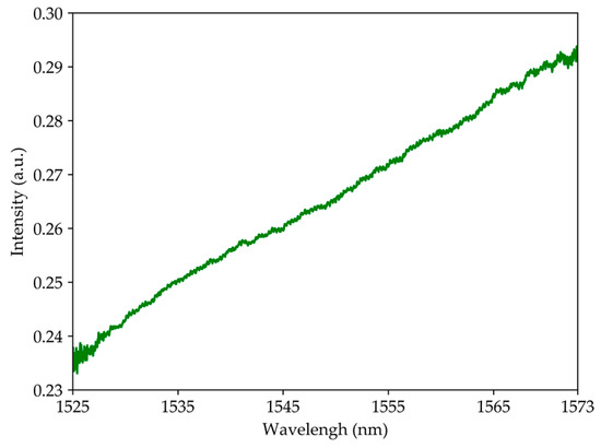 Figure 5 shows the spectrum of the output signal. As can be seen, the intensity increased with the wavelength close to the linear relationship, which indicates a possibility that the fringe has a dimension higher than 200 nm. Due to the limitation of the broadband source, it is not possible to observe the pattern fringe. However, it is very interesting to read this geometry as an intensity sensor. During the characterization, the microsphere did not influence the performance of the system, since the optical paths were mostly influenced by the fiber optic tip.